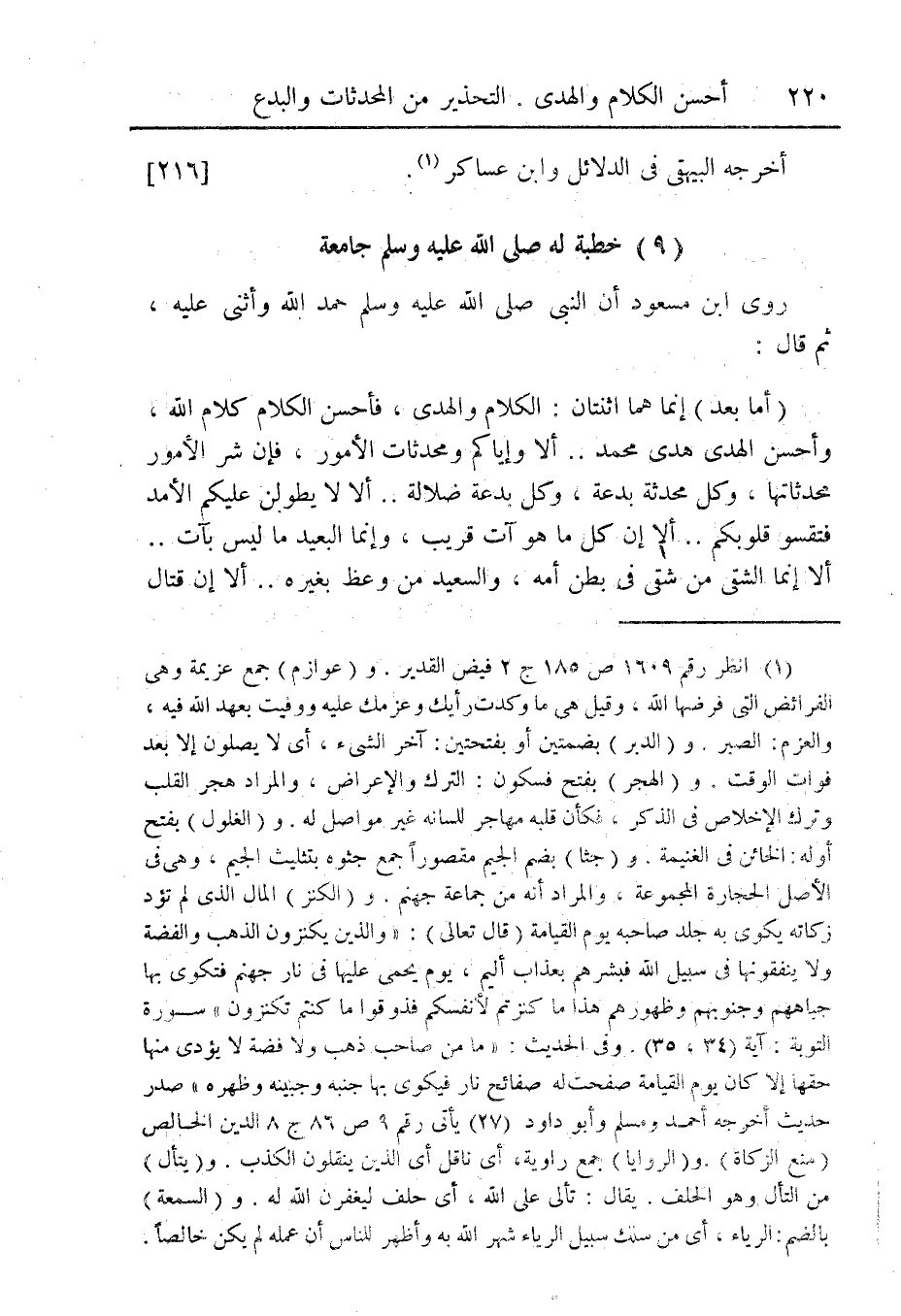 (9) خطبة له صلى الله عليه وسلم جامعة