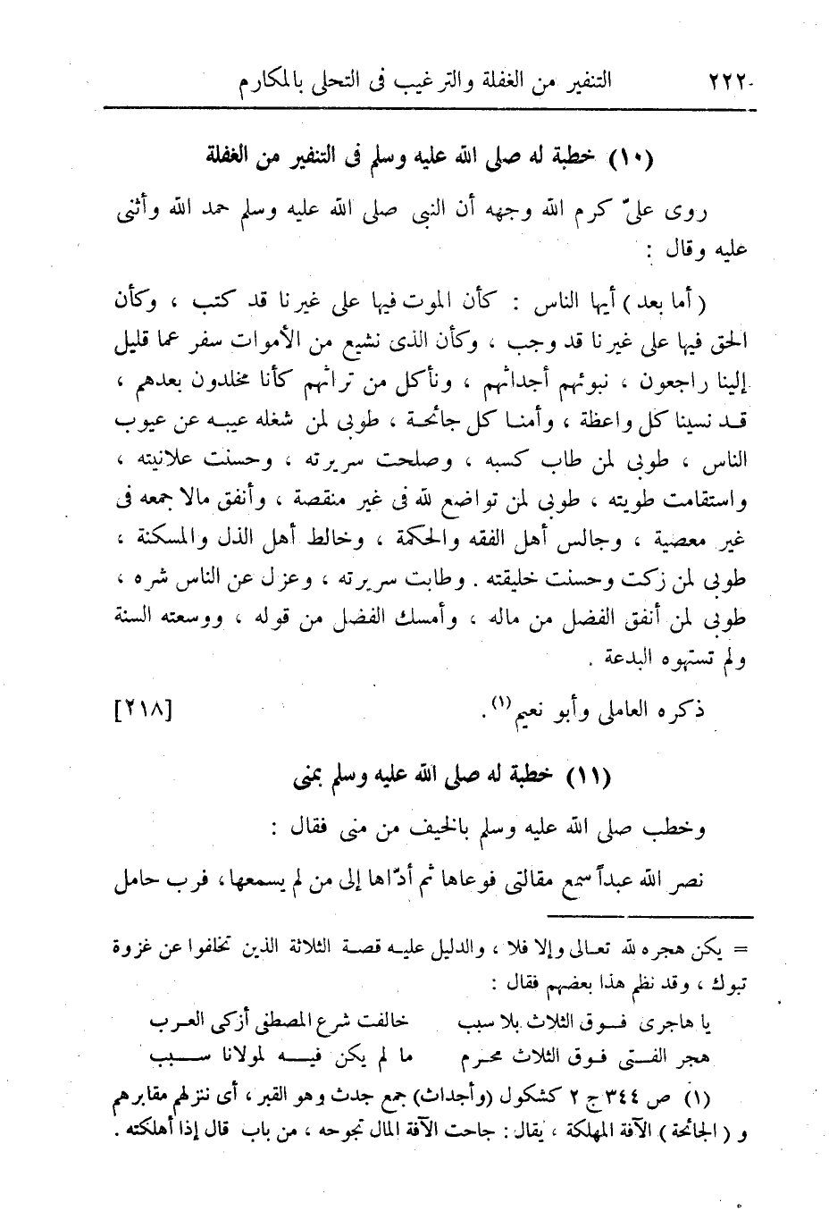(10) خطبة له صلى الله عليه وسلم فى التنفير من الغفلة