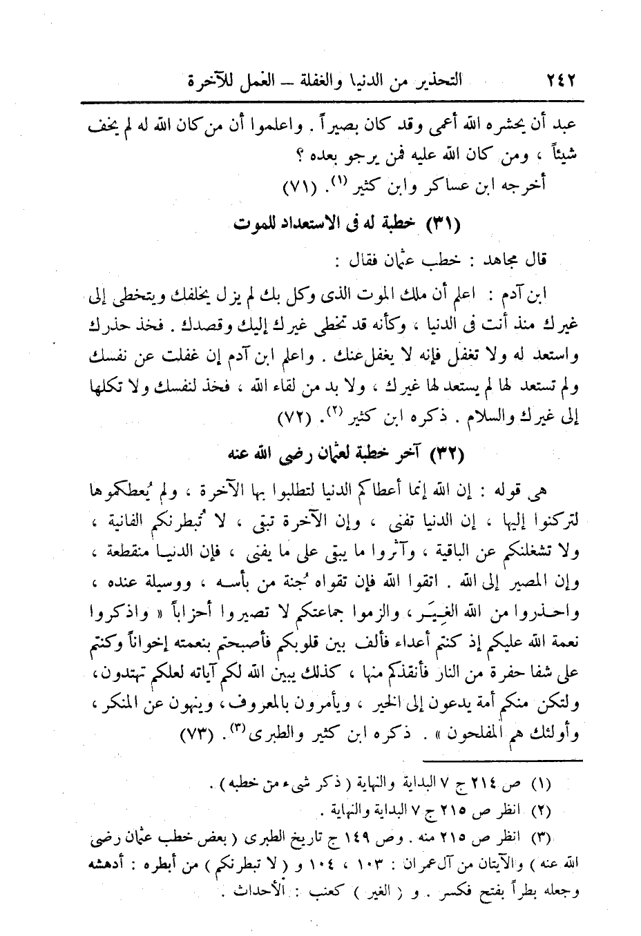 (¬1) ص 214 ج 7 البداية والنهاية (ذكر شيء من خطبه).