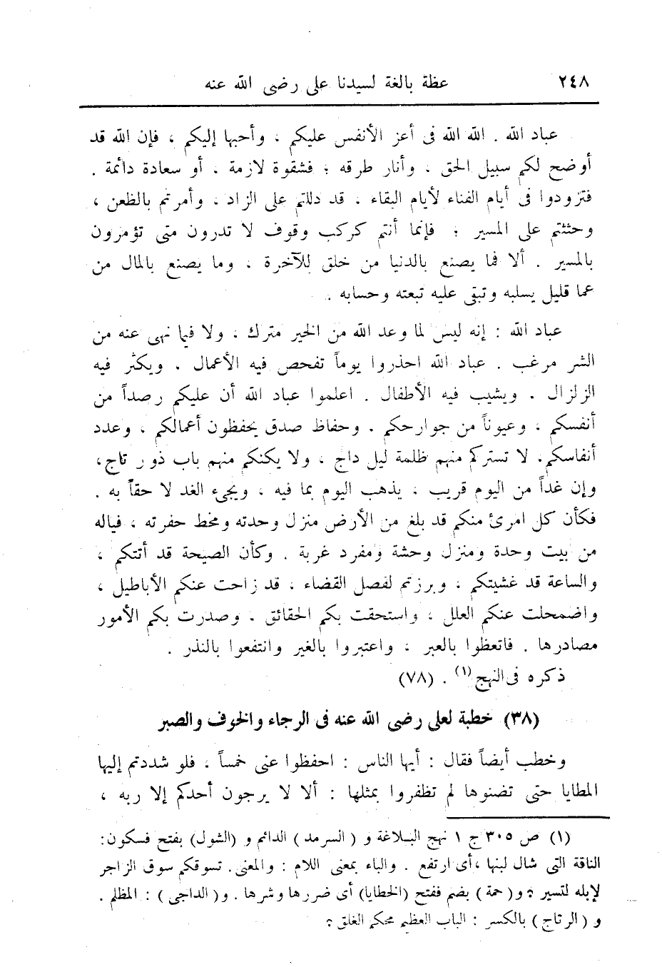 (38) خطبة لعلى رضي الله عنه في الرجاء والخوف والصبر.