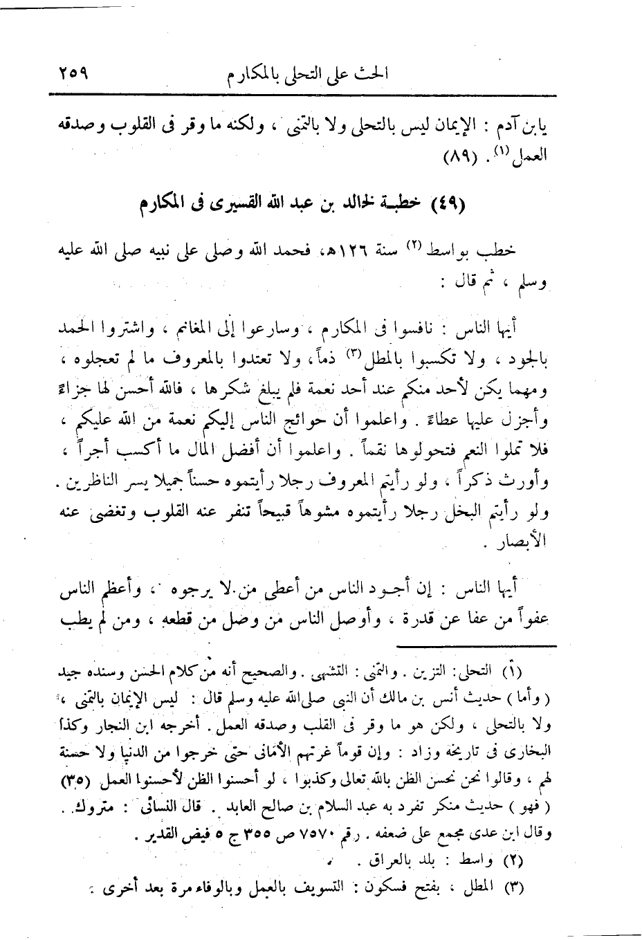 (49) خطبة لخالد بن عبد الله القسيرى فى المكارم