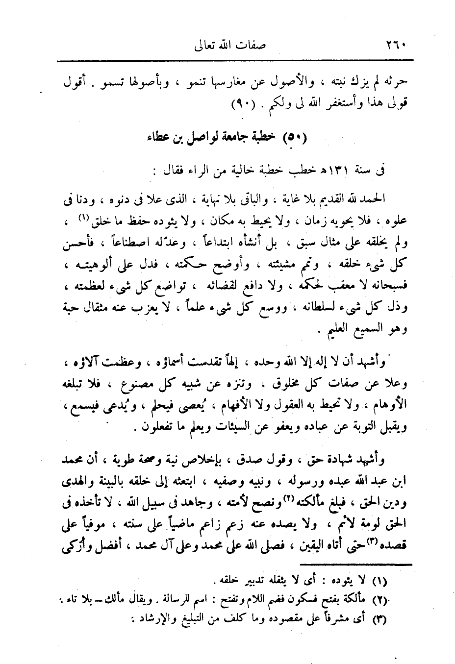 الحمد لله القديم بلا غاية، والباقي بلا نهاية، الذي علا في دنوه، ودنا في علوه، فلا يحويه زمان، ولا يحيط به مكان، ولا يئوده حفظ ما خلق (¬1)، ولم يخلقه على مثال سبق، بل أنشأه ابتداعاً، وعدّ له اصطناعاً، فأحسن كل شئ خلقه، وتمم مشيئته، وأوضح حكمته، فدل على ألوهيته، فسبحانه لا معقب لحكمه، ولا دافع لقضائه، تواضع كل شئ لعظمته، وذل كل شئ لسلطانه، ووسع كل شئ علماً، لا يعزب عنه مثقال حبة وهو السميع العليم.