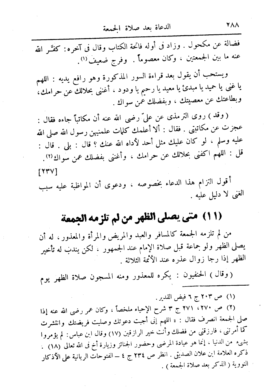 (¬2) ص 270، 271 ج 3 شرح الإحياء ملخصاً، وكان عمر رضى الله عنه إذا صلى الجمعة انصرف فقال: " اللهم إنى أجبت دعوتك وصليت فريضتك وانتشرت كما أمرتنى، فارزقنى من فضلك وأنت خير الرازقين (17) وقال ابن عباس: لم يؤمروا بشئ من الدنيا، إنما هو عيادة المرضى وحضور الجنائز وزيادة أخ فى الله تعالى (18).