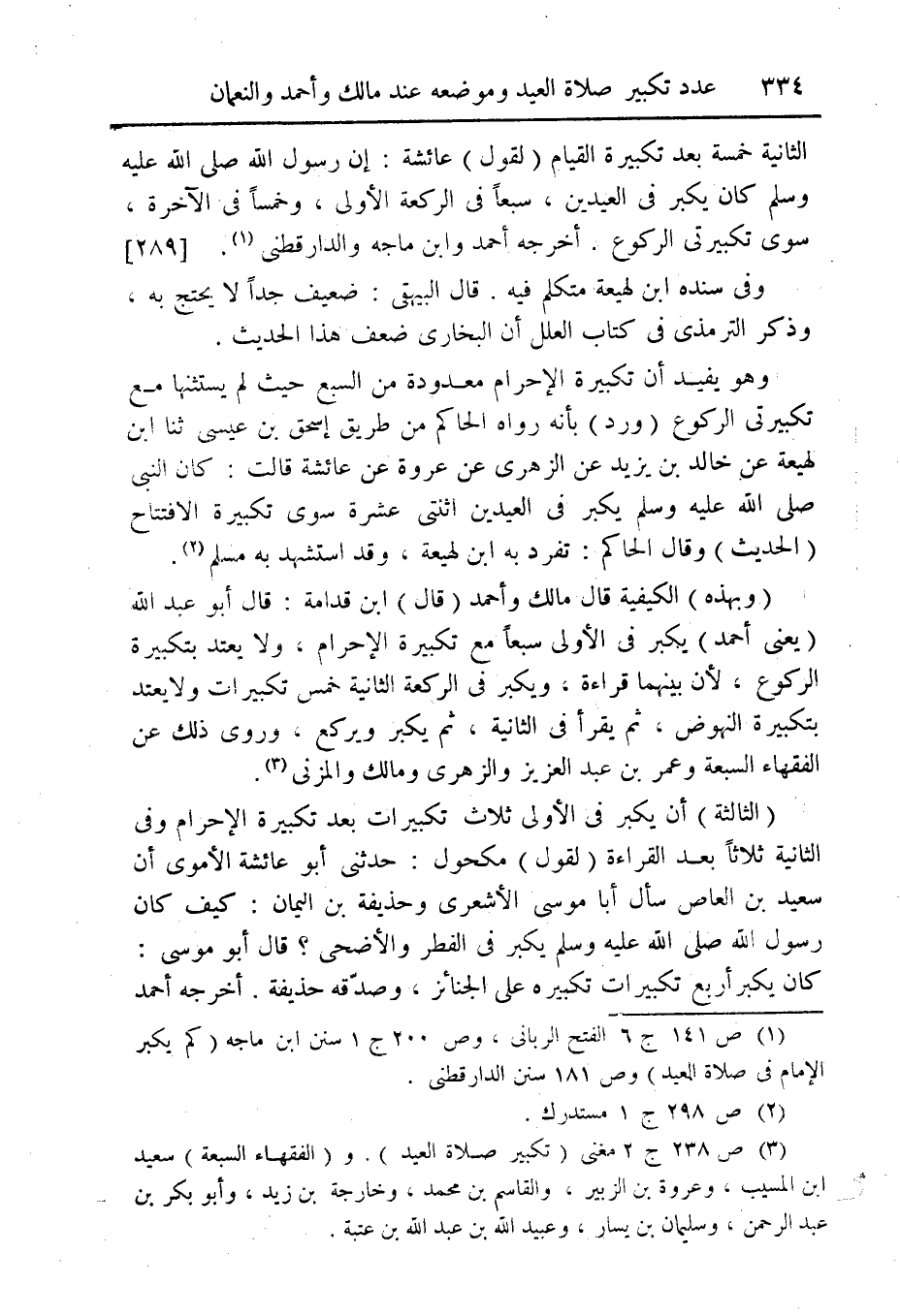 (¬1) ص 141 ج 6 الفتح الربانى، وص 200 ج 1 سنن ابن ماجه (كم يكبر الإمام فى صلاة العيد) وص 181 سنن الدارقطنى.