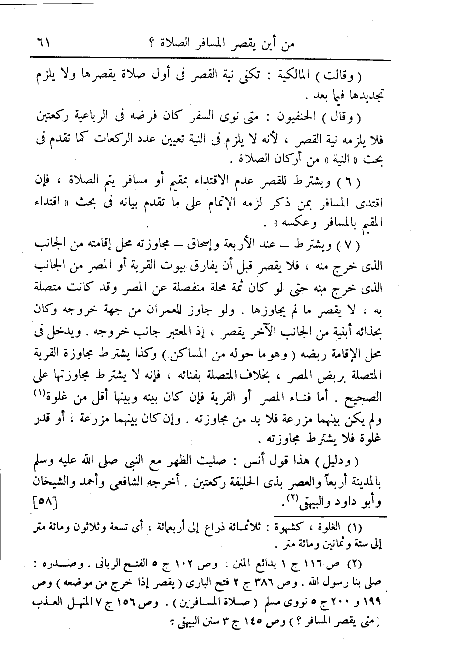 (ودليل) هذا قول أنس: صليت الظهر مع النبى صلى الله عليه وسلم بالمدينة أربعاً والعصر بذى الحليفة ركعتين. أخرجه الشافعى وأحمد والشيخان وأبو داود والبيهقى (¬2). [58]