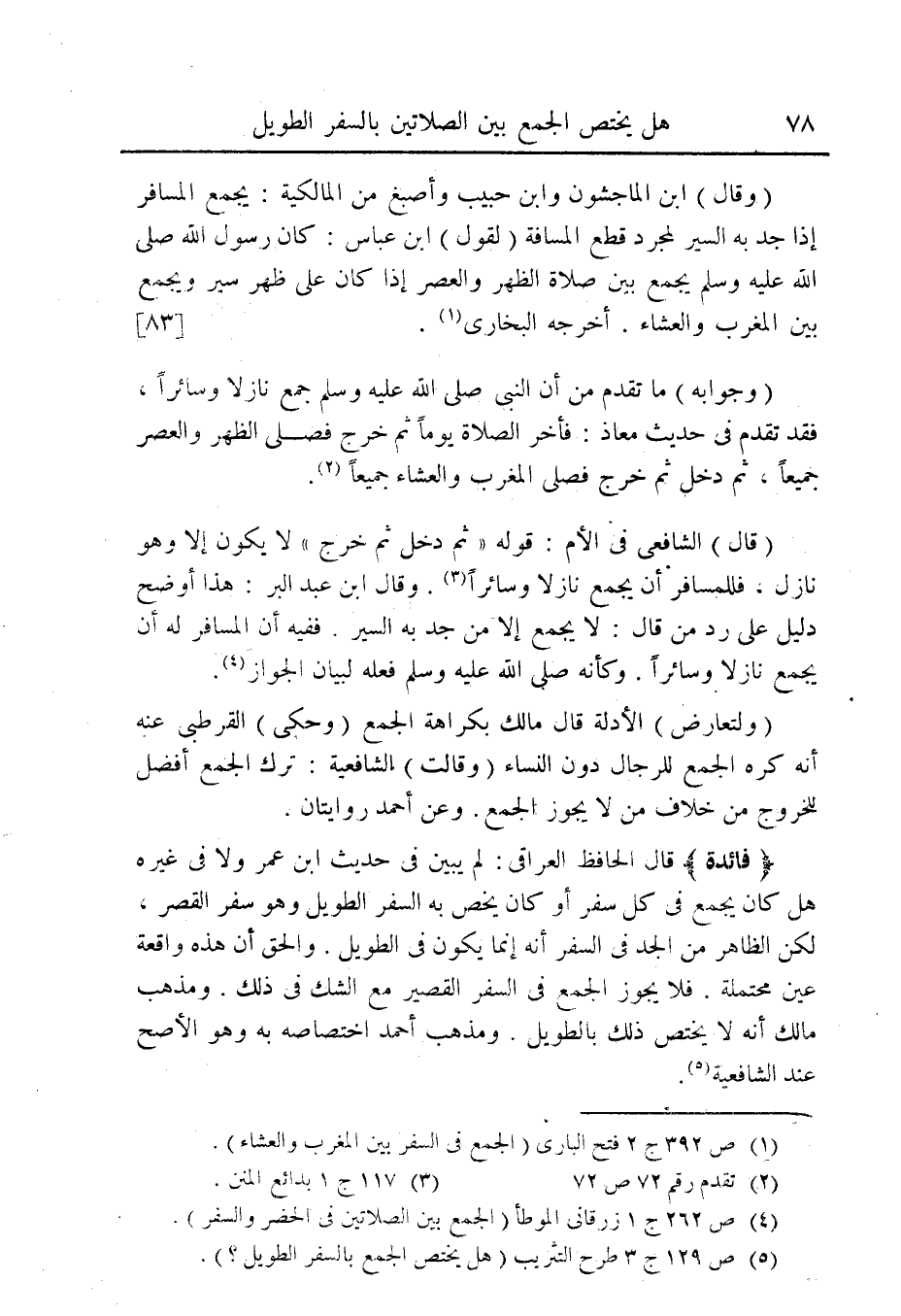 (¬5) ص 129 ج 3 طرح التثريب (هل يختص الجمع بالسفر الطويل؟ ).
