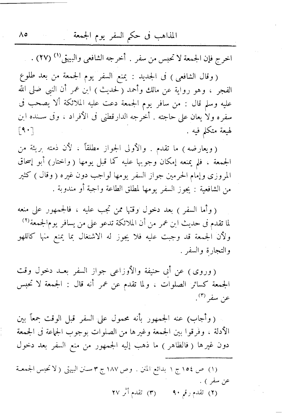 (¬1) ص 154 ج 1 بدائع المنن. وص 187 ج 3 سنن البيهقى (لا تحبس الجمعة عن سفر).