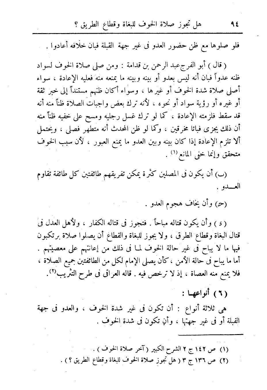 (¬2) ص 136 ج 3 (هل تجوز صلاة الخوف للبغاة وقطاع الطريق؟ ).