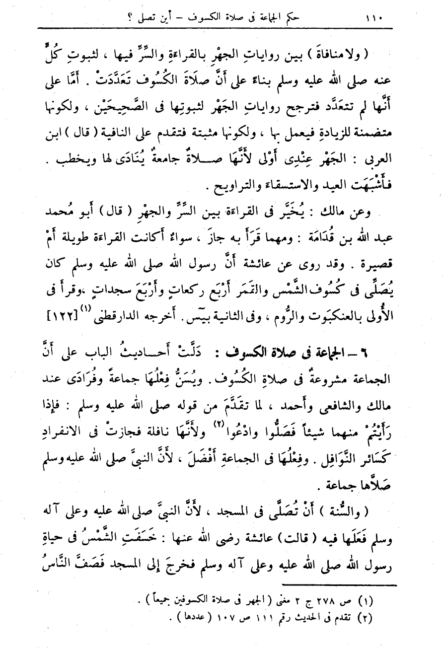 (¬1) ص 278 ج 2 مغى (الجهر فى صلاة الكسوفين جميعاً).