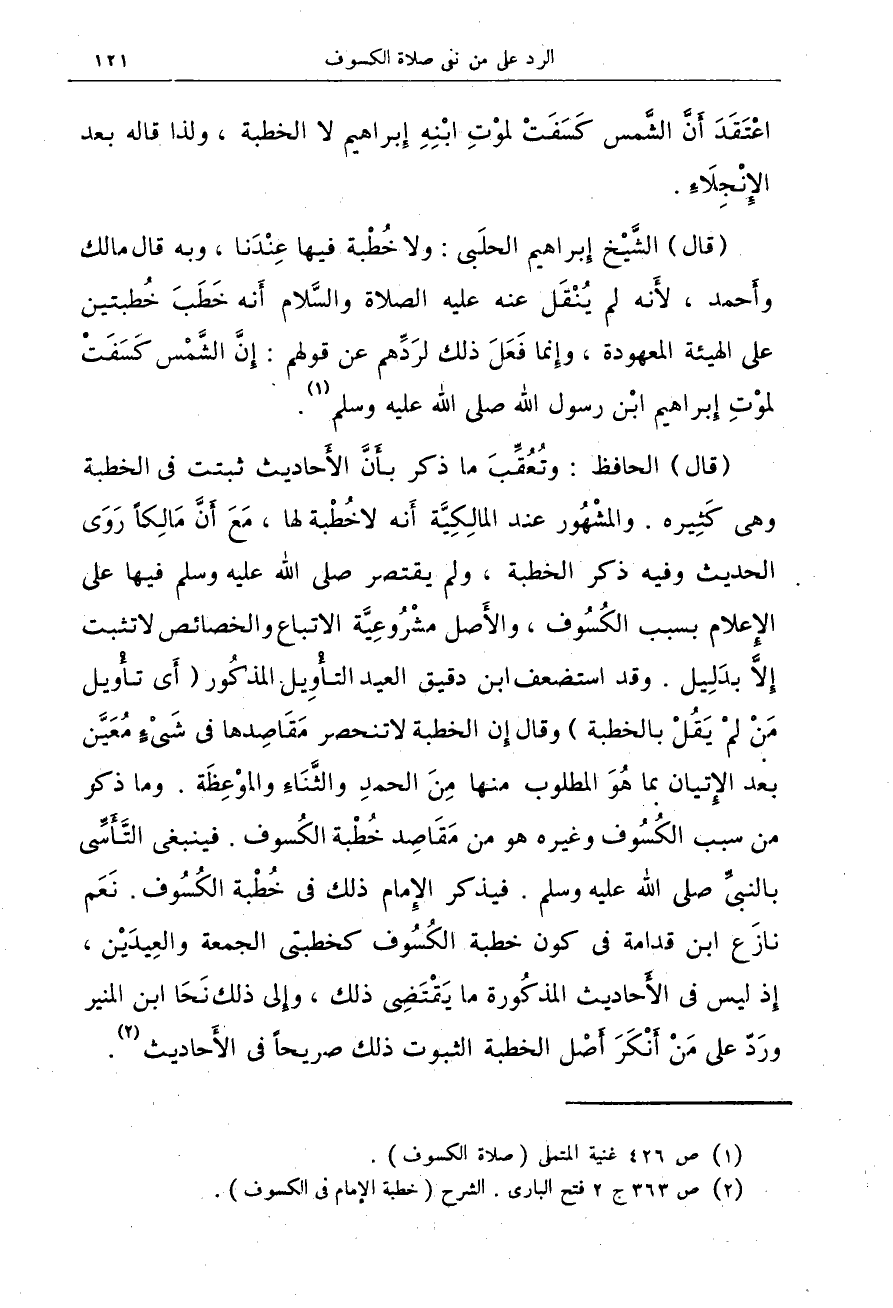 (¬1) ص 426 غنية المتملى (صلاة الكسوف).
