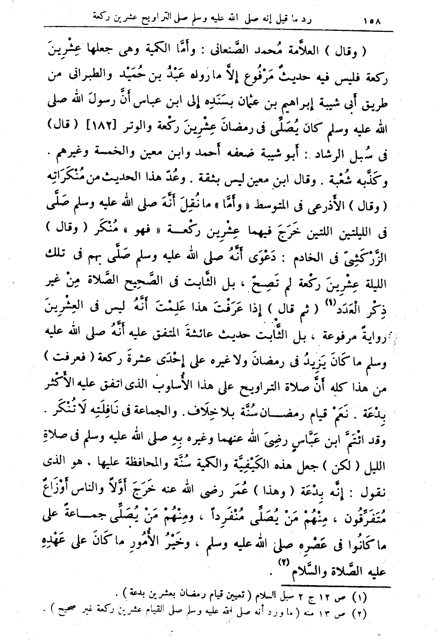 (¬1) ص 12 ج 2 سبل السلام (تعيين قيام رمضان بعشرين بدعة).