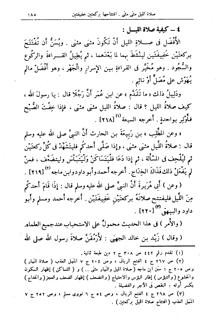 (¬3) ص 268 ج 4 الفتح الرباني، وص 54 ج 6 نووي مسلم، وص 252 ج 7 المنهل العذب (افتتاح صلاة الليل بركعتين).