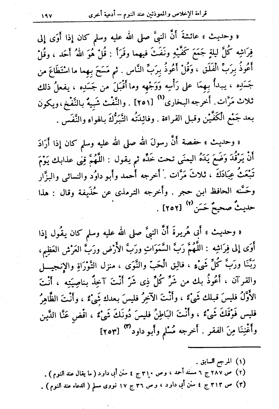 (¬3) ص 313 ج 4 سنن أبي داود، وص 36 ج 17 نووي مسلم (الدعاء عند النوم).