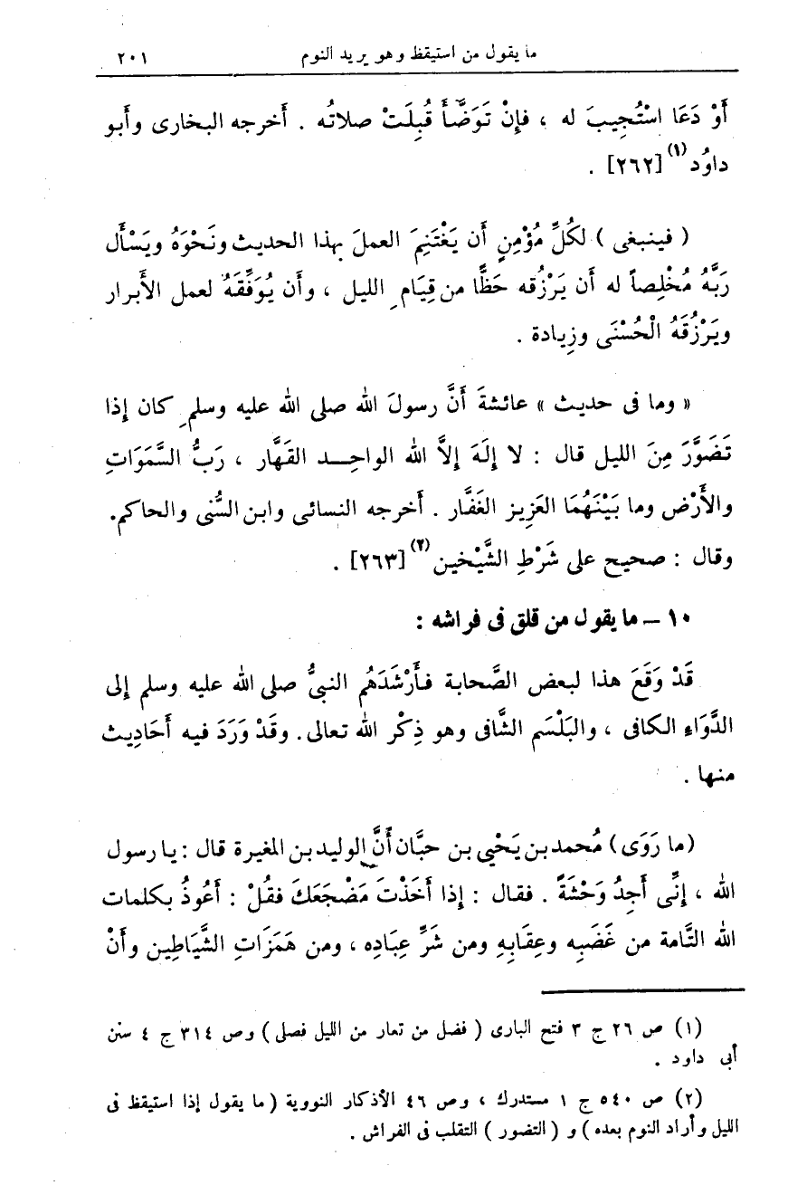 (¬2) ص 540 ج 1 مستدرك، وص 46 الأذكار النووية (ما يقول إذا استيقظ في الليل وأراد النوم بعده) و (التضور) التقلب في الفراش.
