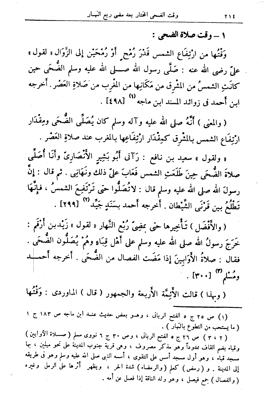 1 - وقت صلاة الضحى: