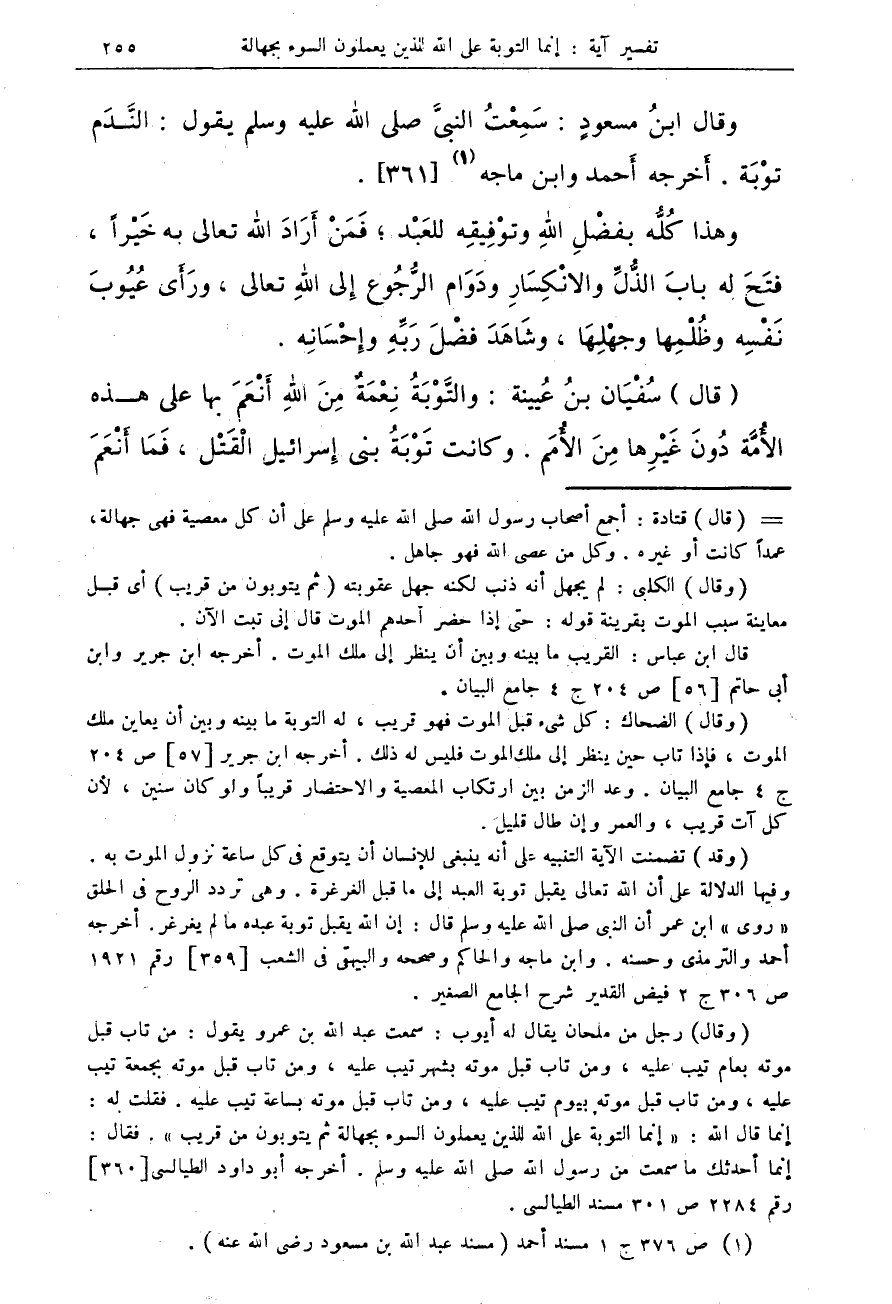 = (قال) قتادة: إجماع أصحاب رسول الله صلى الله عليه وسلم على أن كل معصية فهي جهالة، عمداً كانت أو غيره. وكل من عصى الله فهو جاهل.