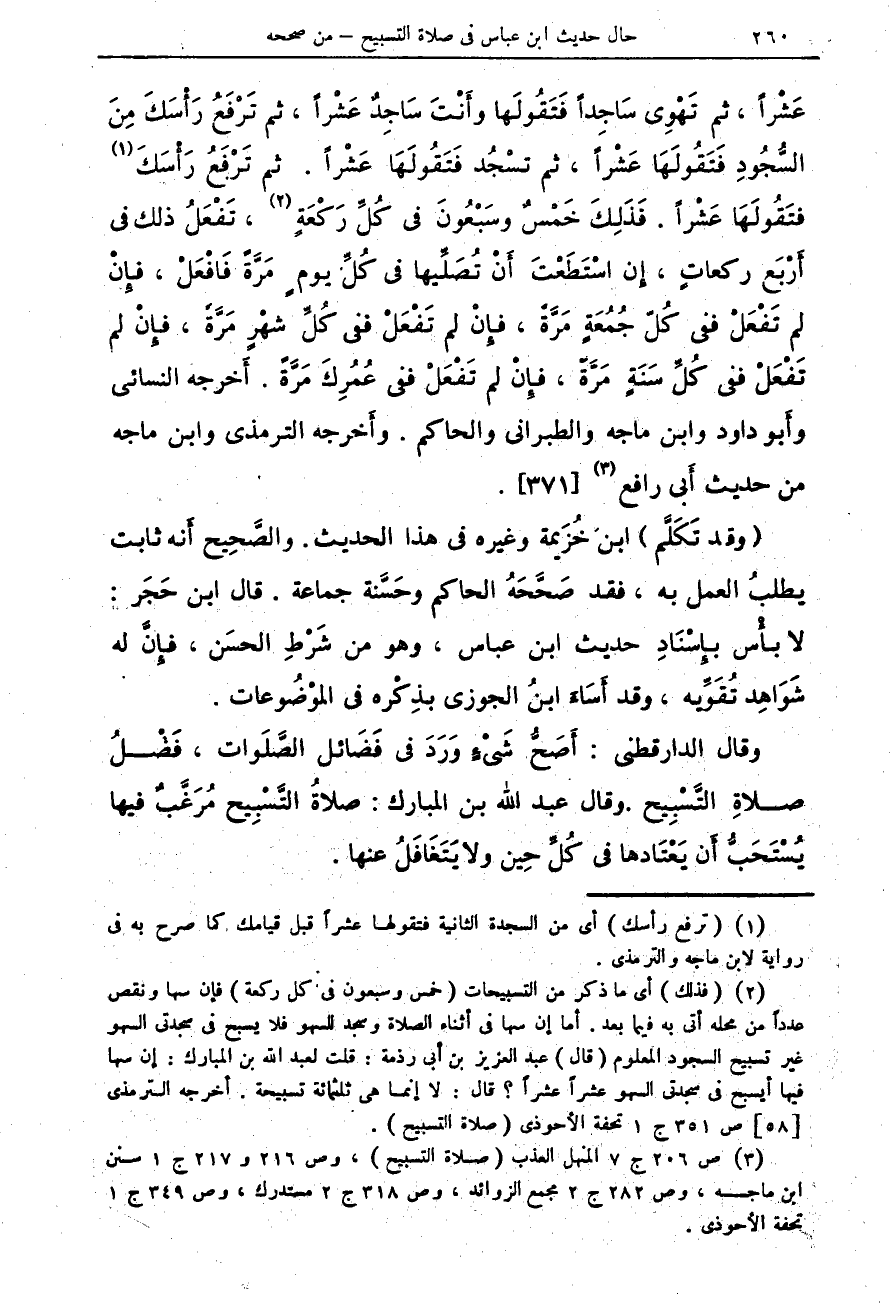 (¬3) ص 206 ج 7 المنهل العذب (صلاة التسبيح)، وص 216 و 217 ج 1 سنن ابن ماجه، وص 282 ج 2 مجمع الزوائد، وص 318 ج 2 مستدرك، وص 349 ج 1 تحفة الاحوذي.