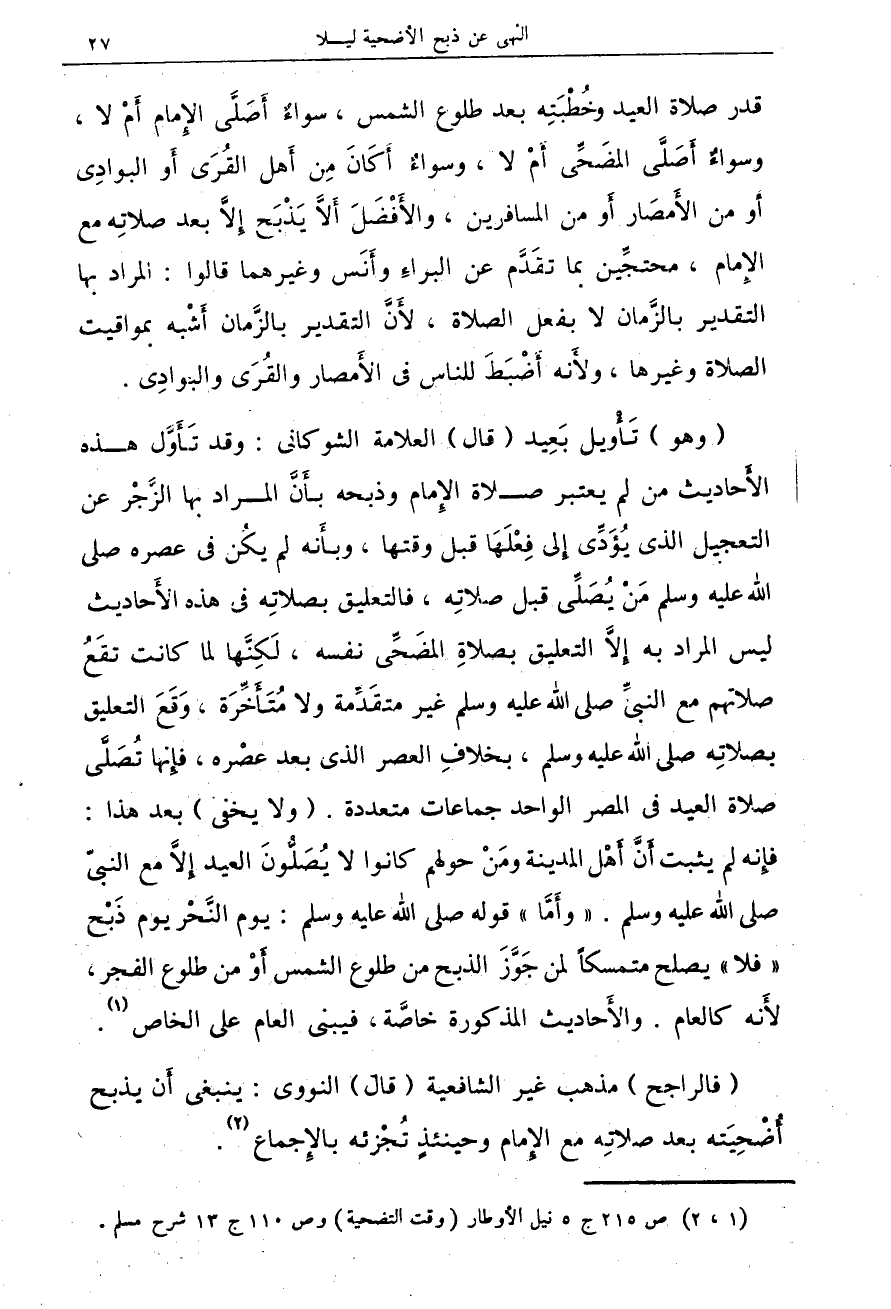 (¬1) و (¬2) ص 215 ج 5 نيل الأوطار (وقت التضحية) وص 110 ج 13 شرح مسلم.