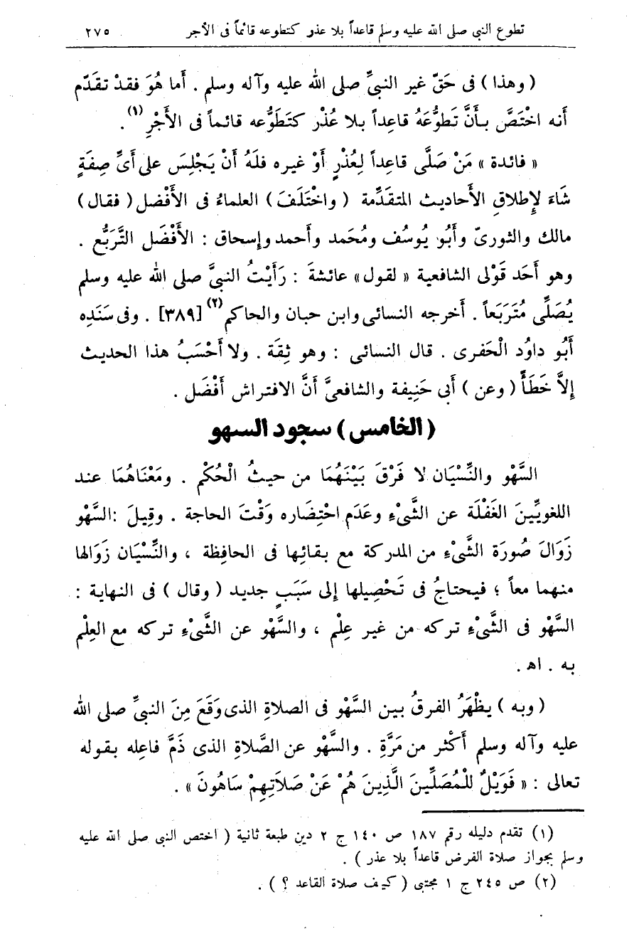 (¬1) تقدم دليله رقم 187 ص 140 ج 2 دين طبعة ثانية (اختص النبي صلى الله عليه وسلم بجواز صلاة الفرض قاعداً بلا عذر).