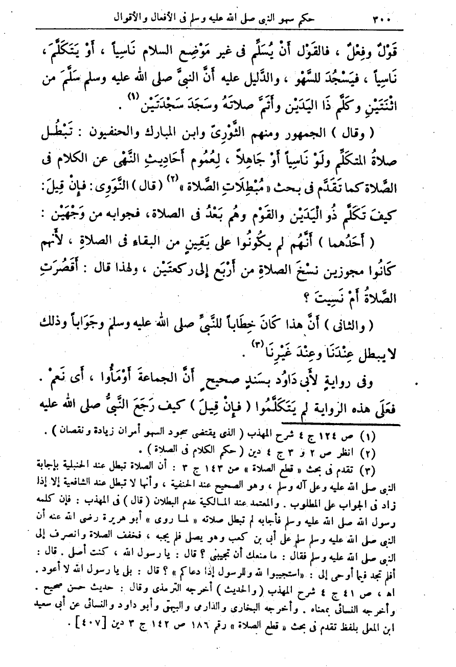 (وقال) الجمهور ومنهم الثوري وابن المبارك والحنفيون: تبطل صلاةُ المتكلم ولو ناسياً أو جاهلاً، لعموم أحاديث النهي عن الكلام في الصلاة كما تقدم في بحث "مبطلات الصلاة" (¬2) (قال) النووي: فإن قيل: كيف تكلم ذو اليدين والقوم وهم بعد في الصلاة، فجوابه من وجهين: