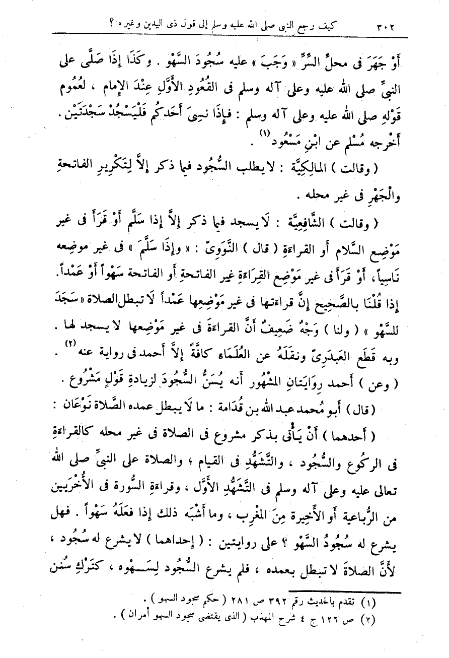 (¬2) ص 126 ج 4 شرح المهذب (الذي يقتضي سجود السهو أمران).