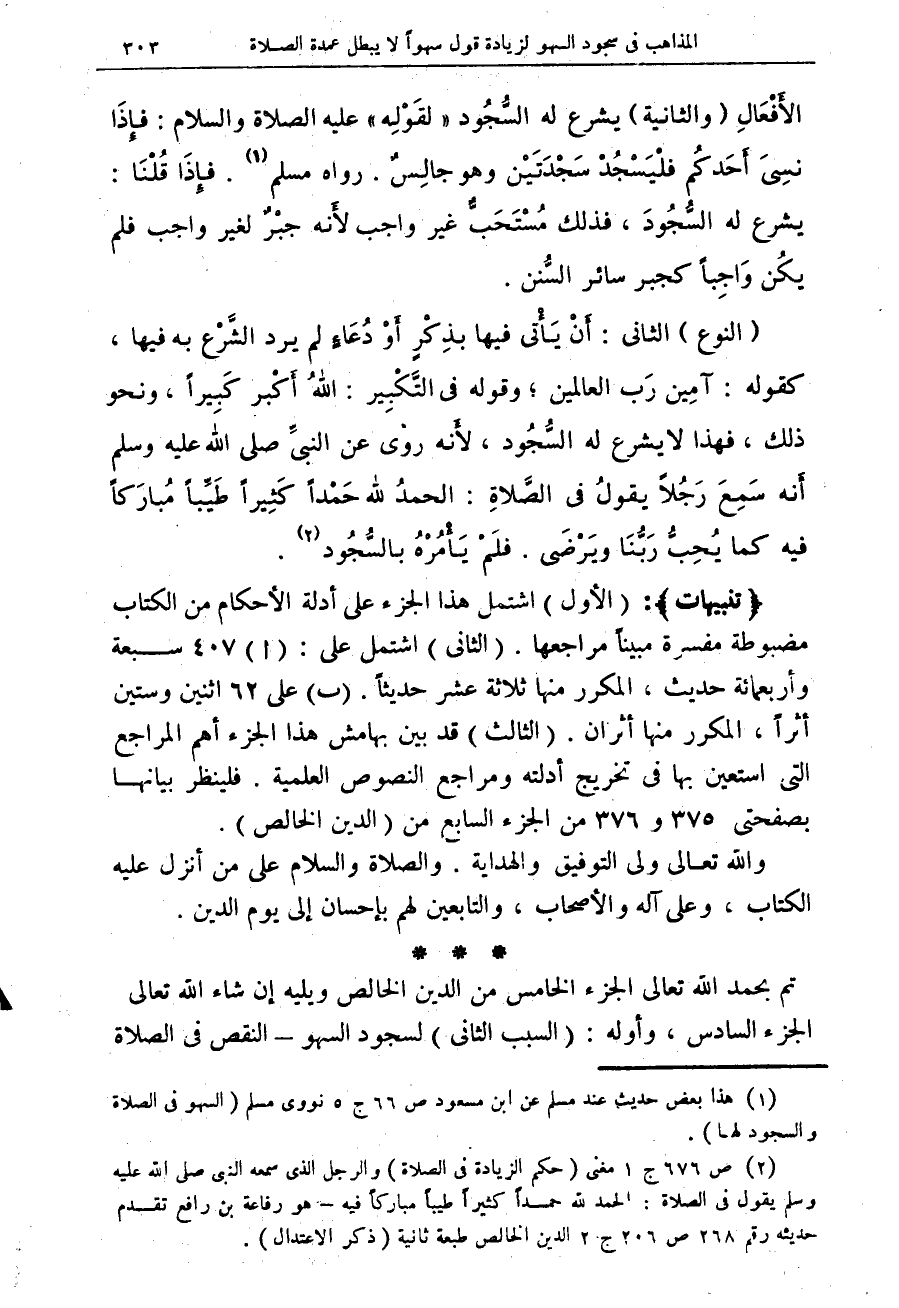 تم بحمد الله تعالى الجزء الخامس من الدين الخالص ويليه إن شاء الله تعالى الجزء السادس، وأوله: (السبب الثاني) لسجود السهو - النقص في الصلاة.