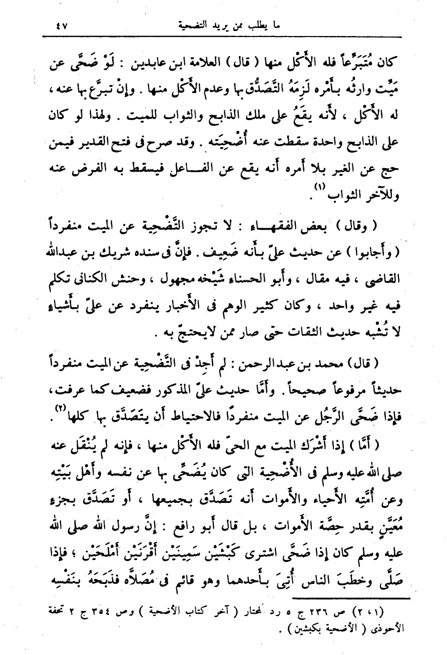 (¬1) ص 236 ج 5 رد المحتار (آخر كتاب الأضحية) وص 354 ج 2 تحفة الأحوذى (الأضحية بكبشين).