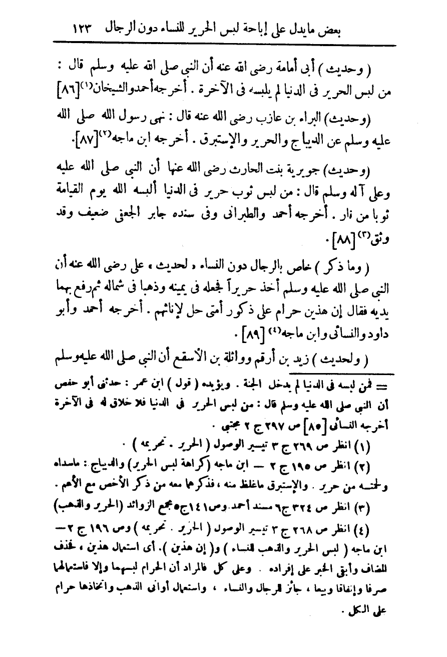 (¬1) (انظر ص 269 ج 3 تيسير الوصول 0 الحرير - تحريمة)
