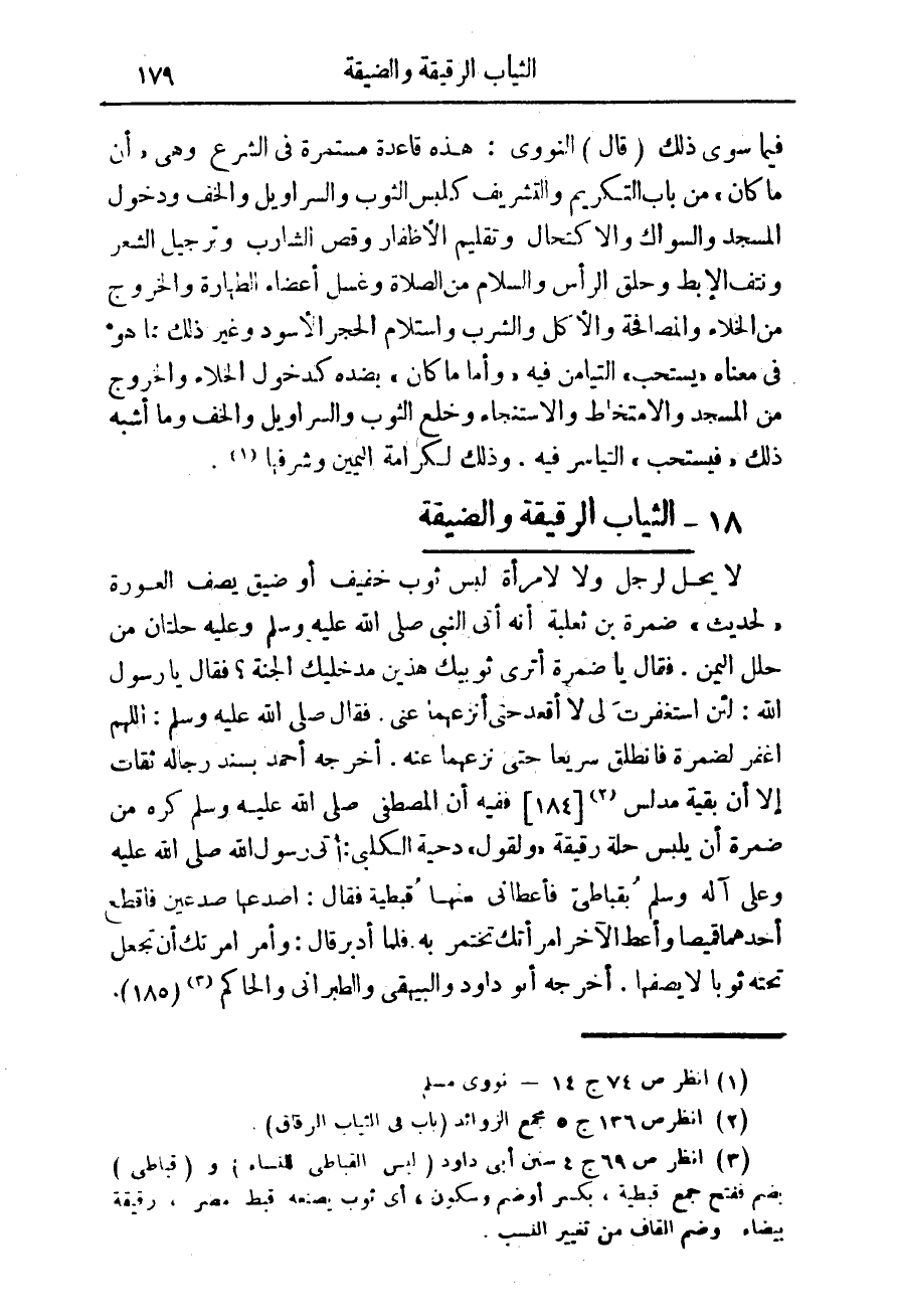 (¬3) انظر ص 69 ج 4 سنن ابى داود (لبس القباطى للنساء) و (قباطى) بضم ففتح جمع قبطية، بكسر أو ضم وسكون، اى ثوب يصنعه قبط مصر، رقيقة بيضاء وضم القاف من تغيير النسب.