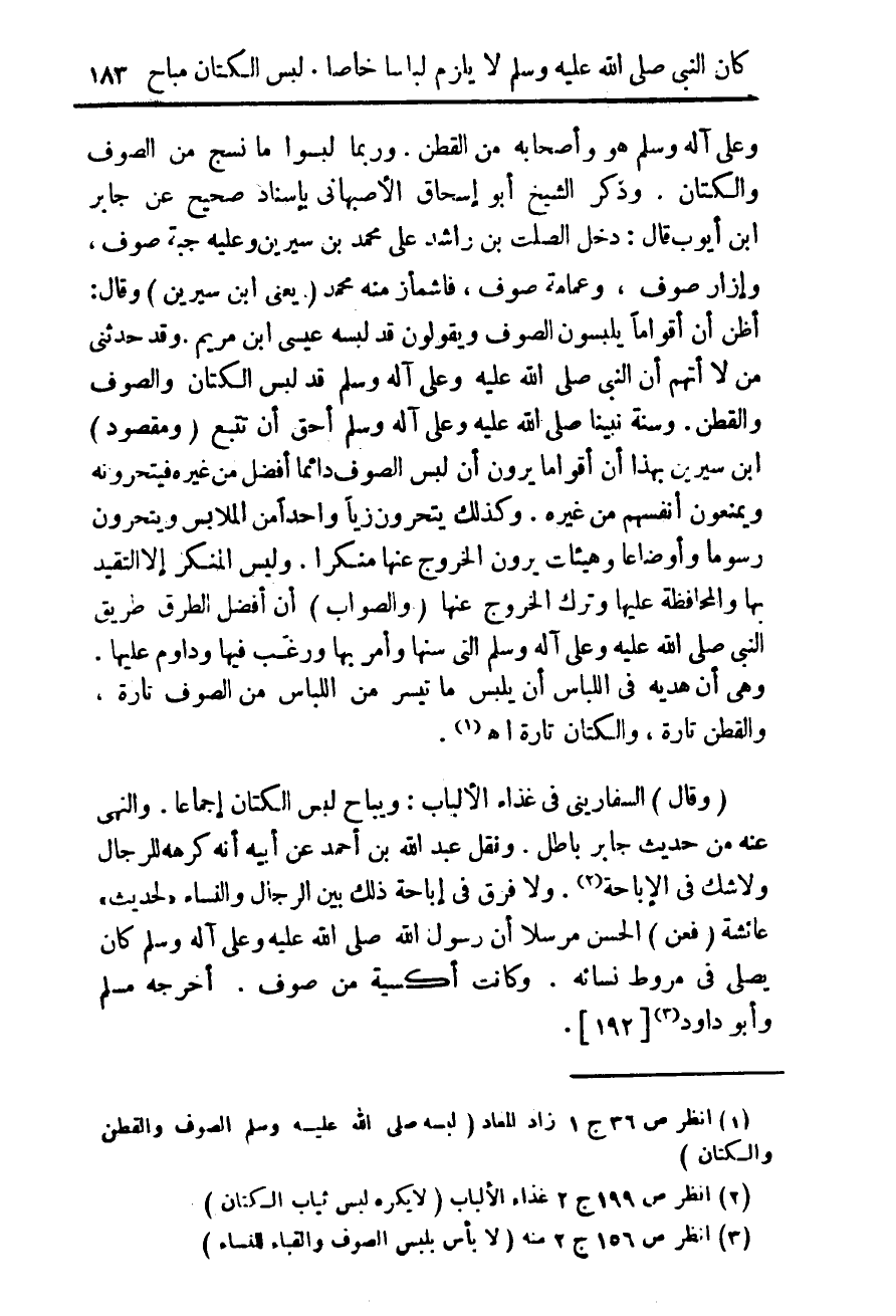 (¬1) انظر ص 36 ج 1 زاد المعاد (لبسه صلى الله علهي وسلم الصوف والقطن والكتان).