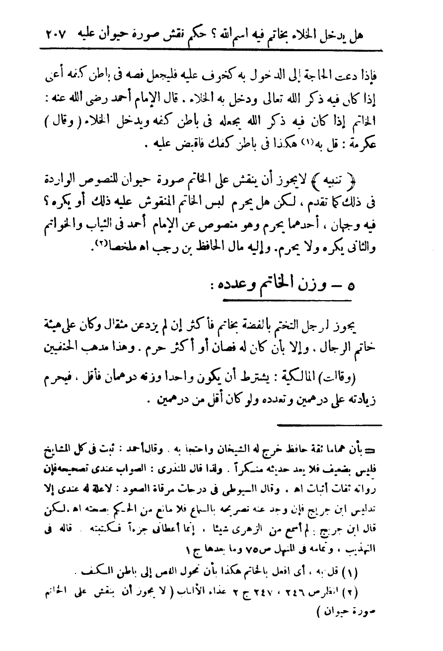 (¬2) انظر ص 247، 246 ج 2 غذاء الألباب (لا يجوز أن ينقش على الخاتم صورة حيوان)