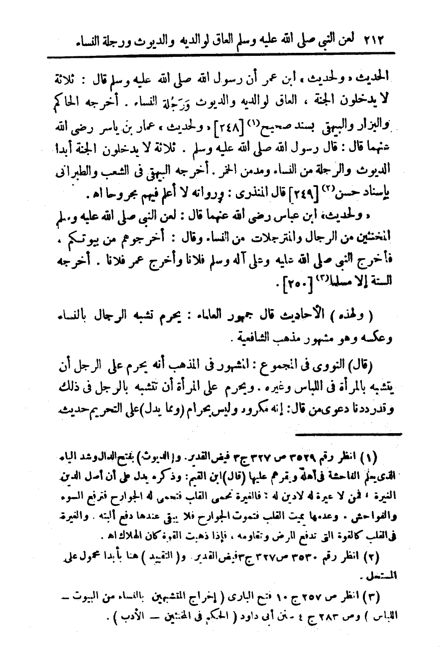 (¬3) انظر ص 257 ج 10 فتح البارى (إخراج المتشبهين بالنساء من البيوت - اللباس) وص 283 ج 4 سنن ابى داود (الحكم فى المخنثين - الأدب).