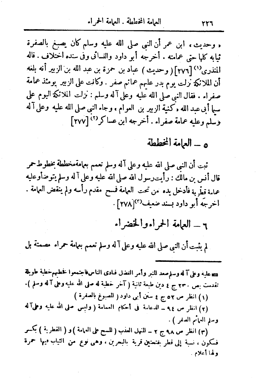 (¬2) انظر ص 94 - الدعامة فى أحكام العمامة (ولبس صلى الله عليه وسلم العمائم الصفر).