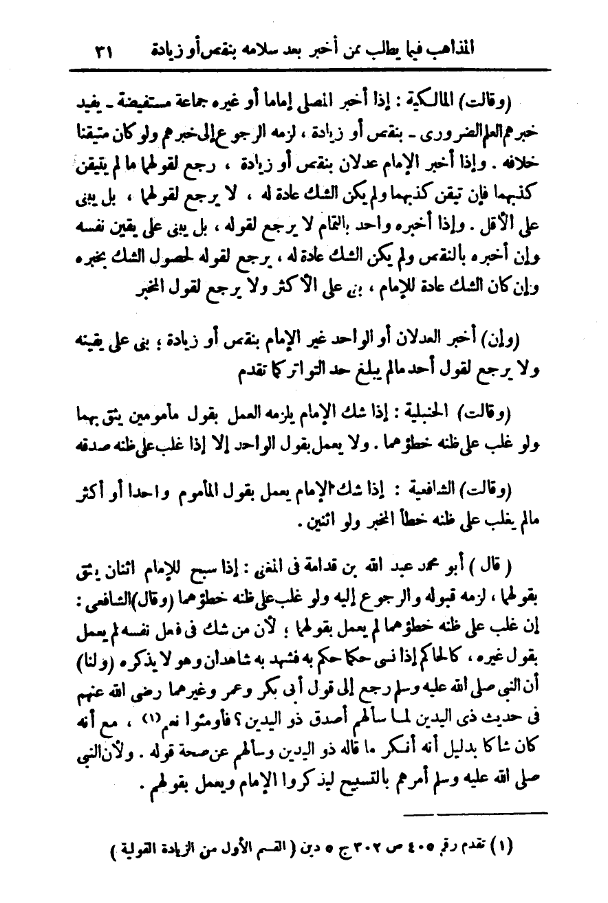 (قال) أبو محمد عبد الله بن قدامة فى المغنى: إذا سبح للإمام اثنان يثق بقولهما، لزمه قبوله والرجوع إليه ولو غلب على ظنه خطؤهما (وقال) الشافعى: إن غلب على ظنه خطؤهما لم يعمل بقولهما، لأن من شك فى فعل نفسه لم يعمل بقول غيره، كالحاكم إذا نسى حكما حكم به قشهد به شاهدان وهو لا يذكره (ولنا) أن النبى صلى الله عليه وسلم رجع إلى قول أبى بكر وعمر وغيرهما رضى الله عنهم فى حديث ذى اليدين لما سألهم أصدق ذو اليدين؟ فأومئوا نعم (¬1)، مع أنه كان شاكا بدليل أنه أنكر ما قاله ذو اليدين وسألهم عن صحة قوله. ولأن النبى صلى الله عليه وسلم أمرهم بالتسبيح لذكروا الإمام ويعمل بقولهم.