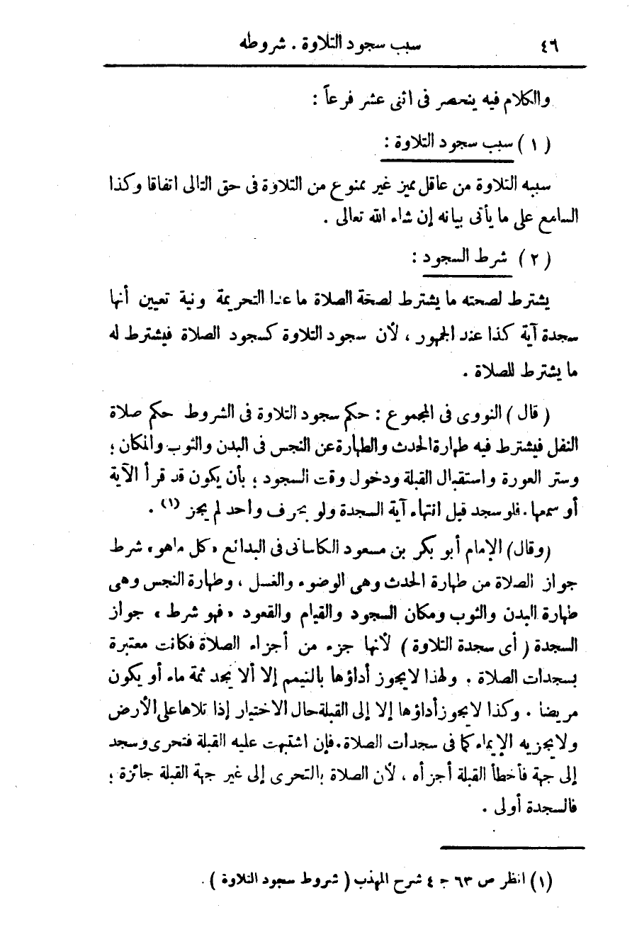 (¬1) انظر ص 63 ج 4 شرح المهذب (شروط سجود التلاوة).