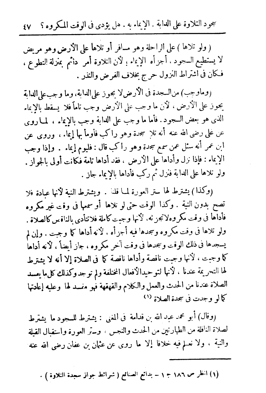 (¬1) انظر ص 186 ج 1 - بدائع الصنائع (شرائط جواز سجدة التلاوة).