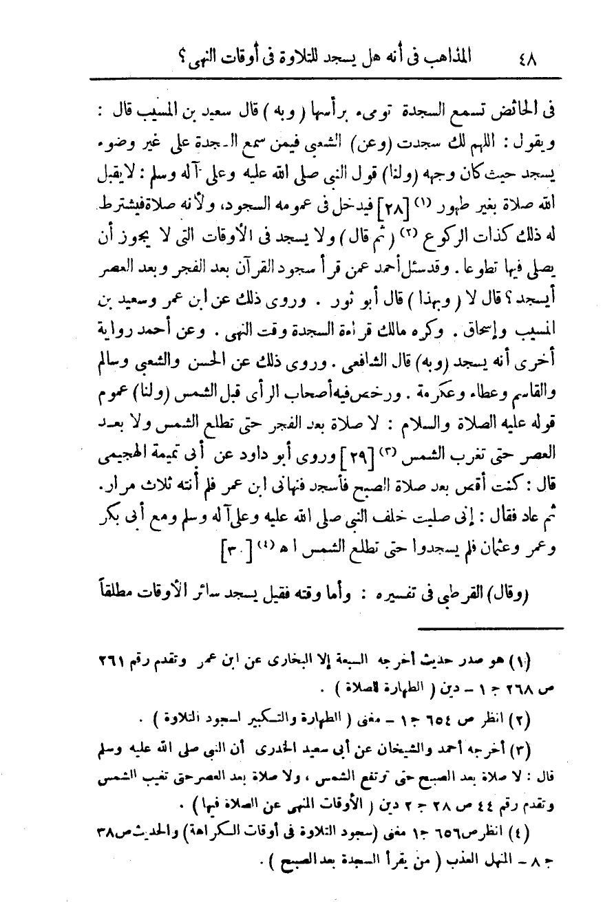(¬4) انظر ص 656 ج 1 مغنى (سجود التلاوة فى أوقات الكراهة) والحديث ص 38 ج 8 - المنهل العذب (من يقرأ السجدة بعد الصبح).