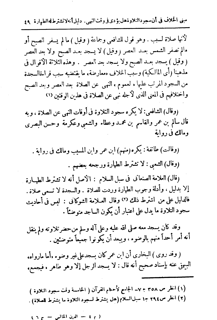 (¬1) أنظر ص 358 ج 7 - الجامع لأحكام القرآن (الخامسة وقت سجود التلاوة).