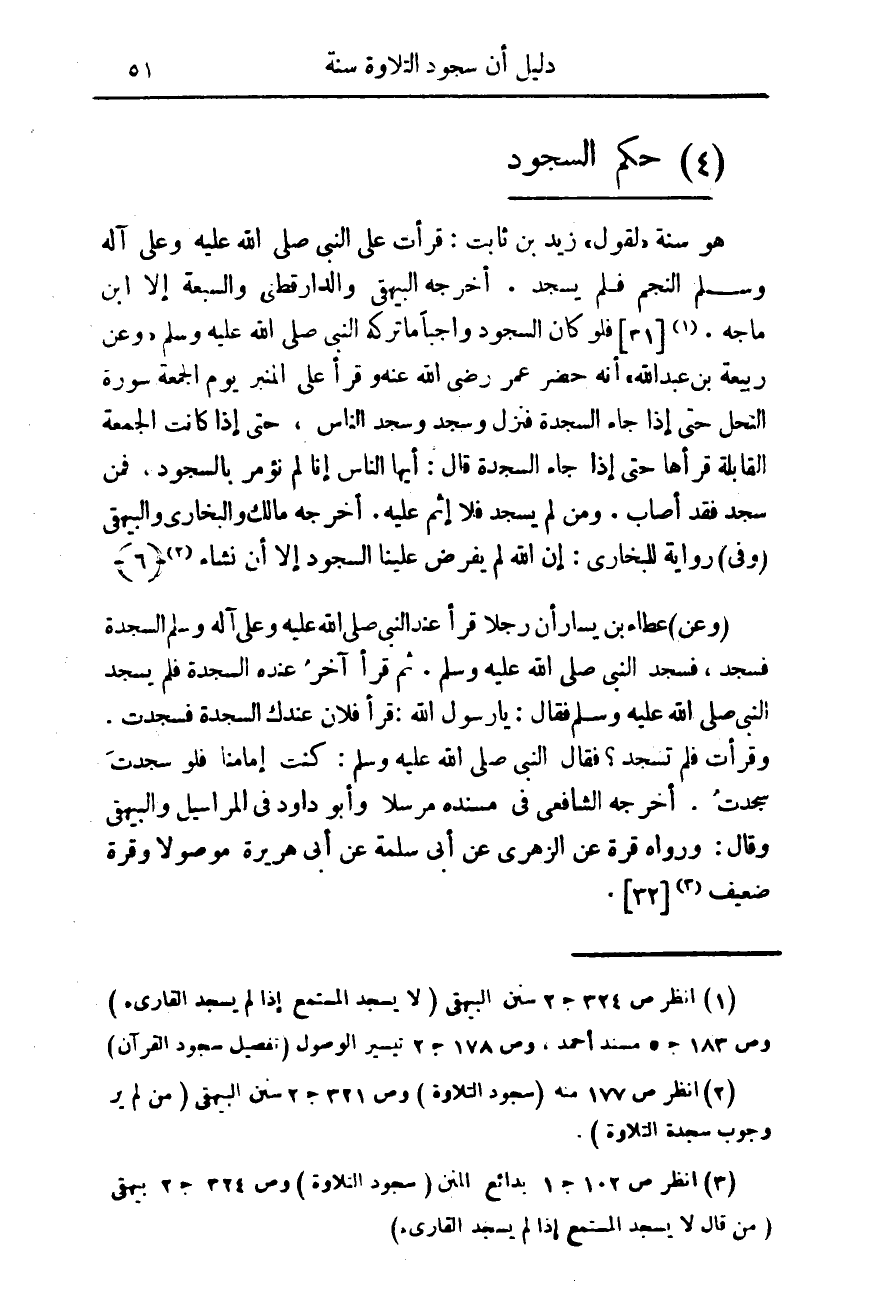 (¬2) انظر ص 177 منه (سجود التلاوة) وص 321 ج 2 سنن البيهقى (من لم ير وجوب سجدة التلاوة).