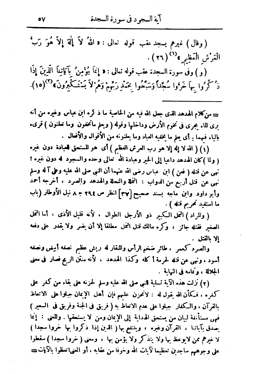 (و) وفى سورة السجدة عقب قوله تعالى: {إِنَّمَا يُؤْمِنُ بِآيَاتِنَا الَّذِينَ إِذَا ذُكِّرُوا بِهَا خَرُّوا سُجَّداً وَسَبَّحُوا بِحَمْدِ رَبِّهِمْ وَهُمْ لَا يَسْتَكْبِرُونَ} (¬2) {15}
