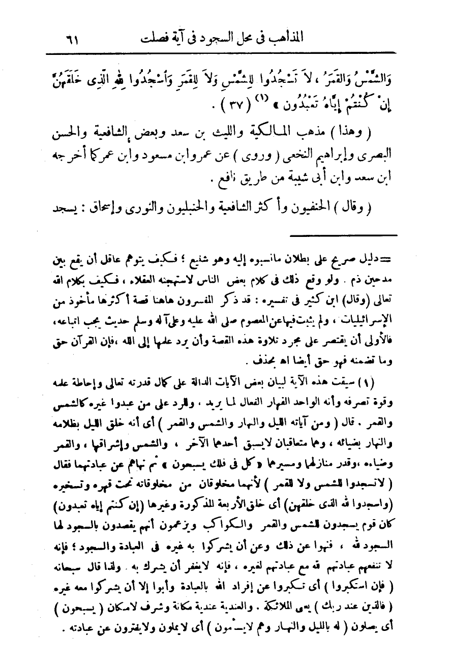 وَالشَّمْسُ وَالْقَمَرُ لَا تَسْجُدُوا لِلشَّمْسِ وَلَا لِلْقَمَرِ وَاسْجُدُوا لِلَّهِ الَّذِي خَلَقَهُنَّ إِن كُنتُمْ إِيَّاهُ تَعْبُدُونَ} (¬1) {37}