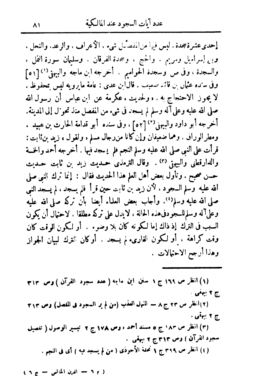 (¬3) انظر ص 183 ج 5 مسند أحمد، وص 178 ج 2 تيسير الوصول (تفصيل سجود القرآن) وص 313 ج 2 بيهقى.
