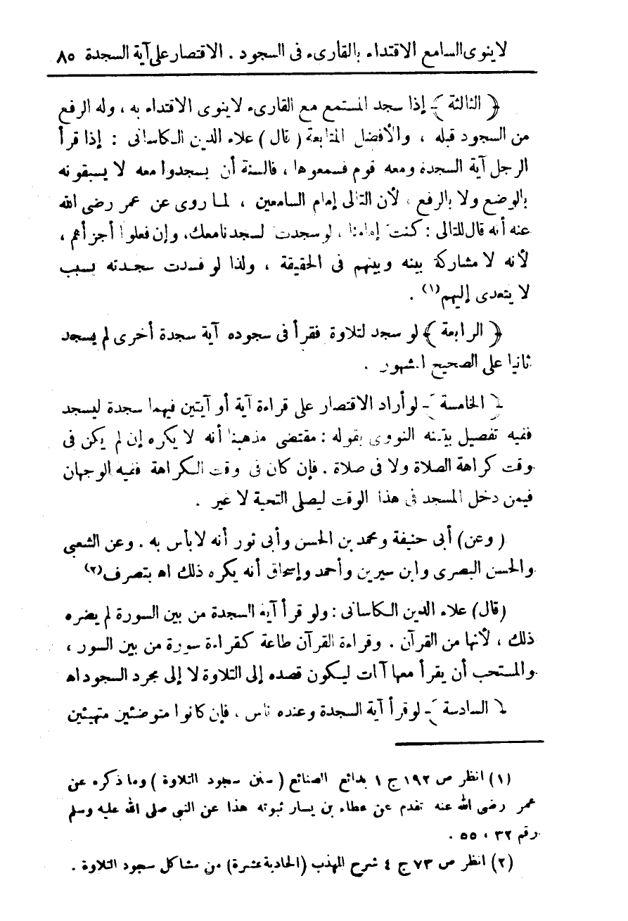 (¬2) انظر ص 73 ج 4 شرح المهذب (الحادية عشرة) من مشاكل سجود التلاوة.