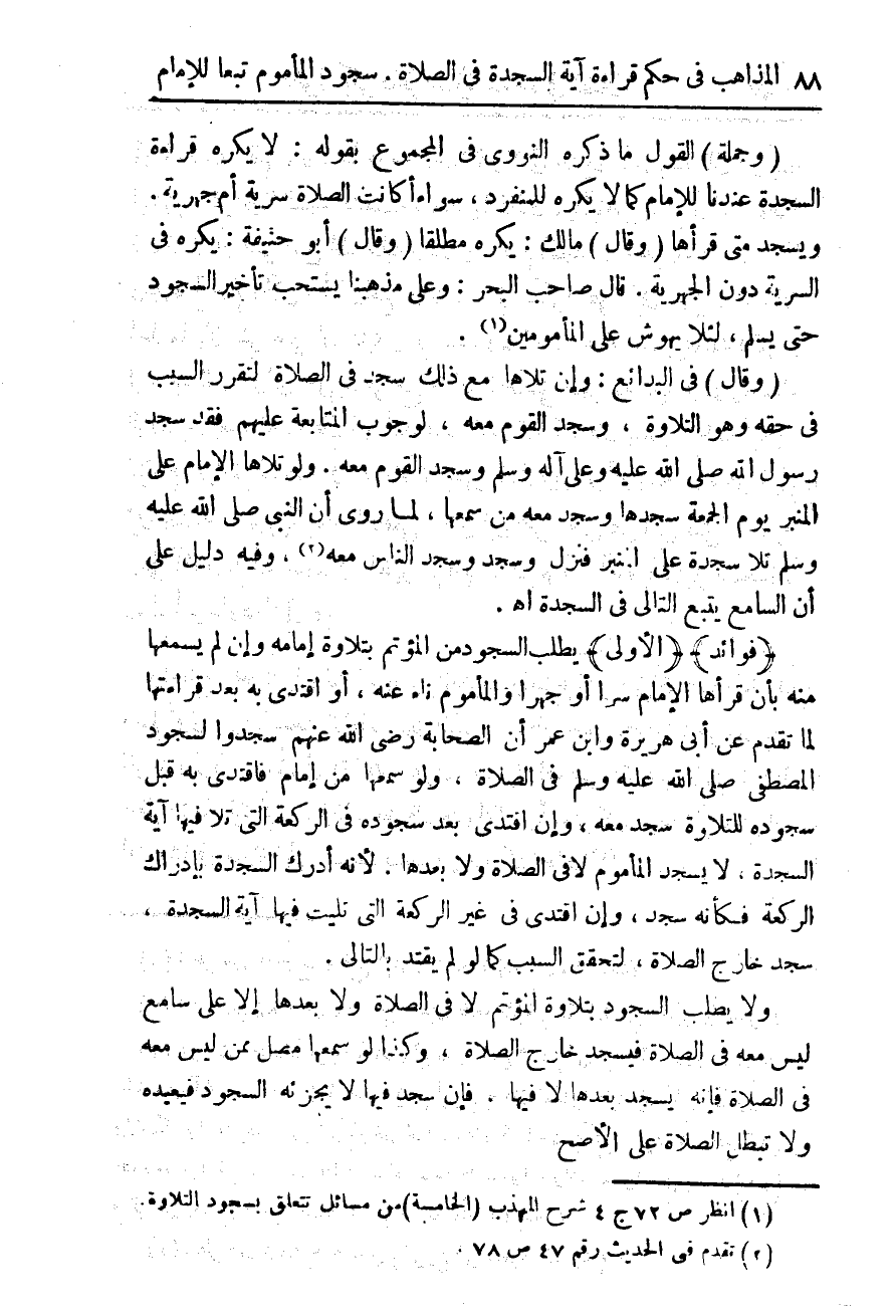 (¬1) انظر ص 72 ج 4 شرح المهذب (الخامسة) من مسائل تتعلق بسجود التلاوة.