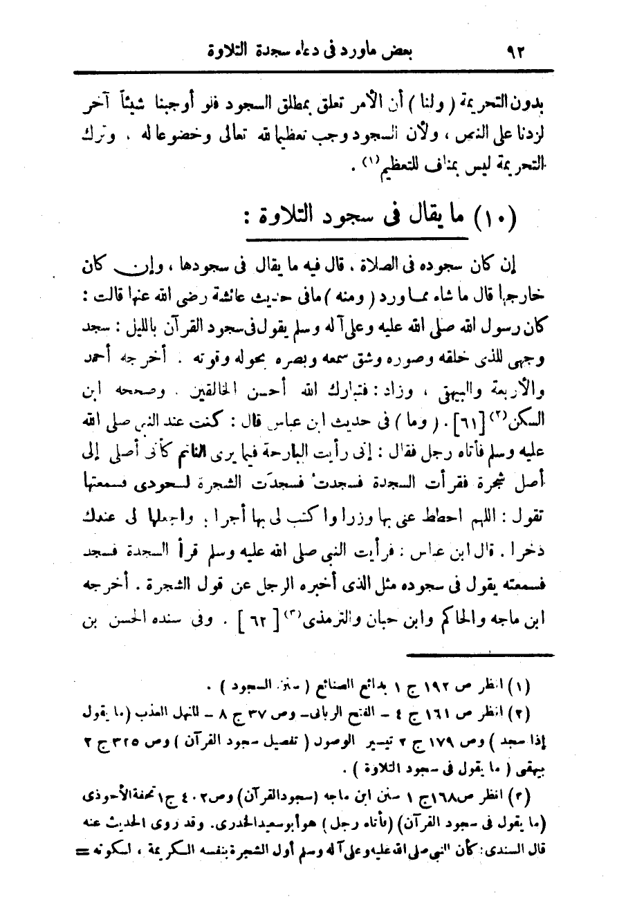 (¬2) انظر ص 161 ج 4 - الفتح الربانى - وص 37 ج 8 - المنهل العذب (ما يقول إذا سجد) (وص 179 ج 2 تيسير الوصول 0 تفصيل سجود القرآن) وص 325 ج 2 بيهقى (ما يقول فى سجود التلاوة).
