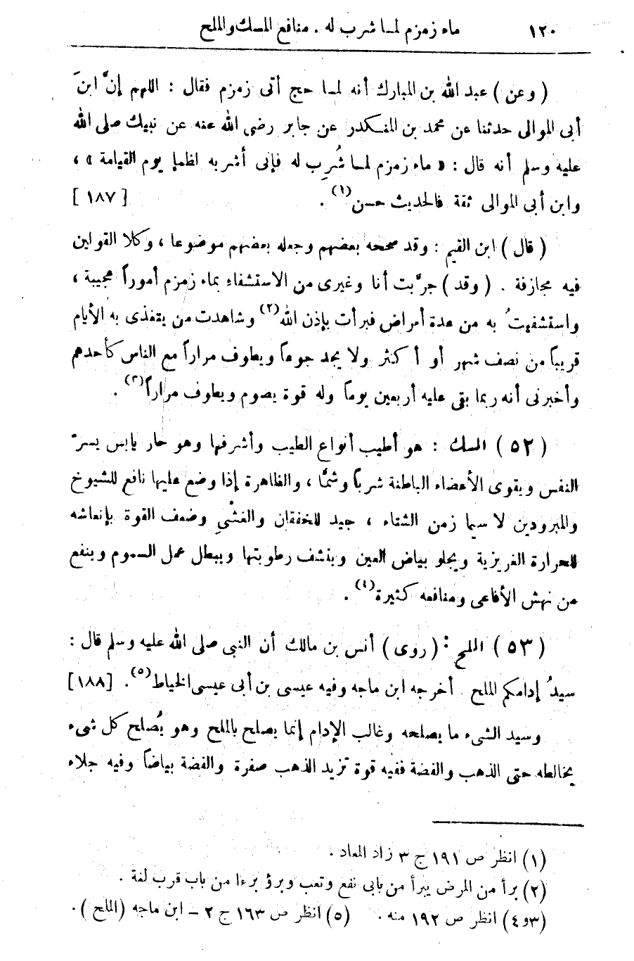 (53) الملح: (روى) انس بن مالك أن النبي صلى الله عليه وسلم قال: سيد إدامكم الملح أخرجه ابن ماجه وفيه عيسى بن آبى عيسى الخياط (¬5) {188}