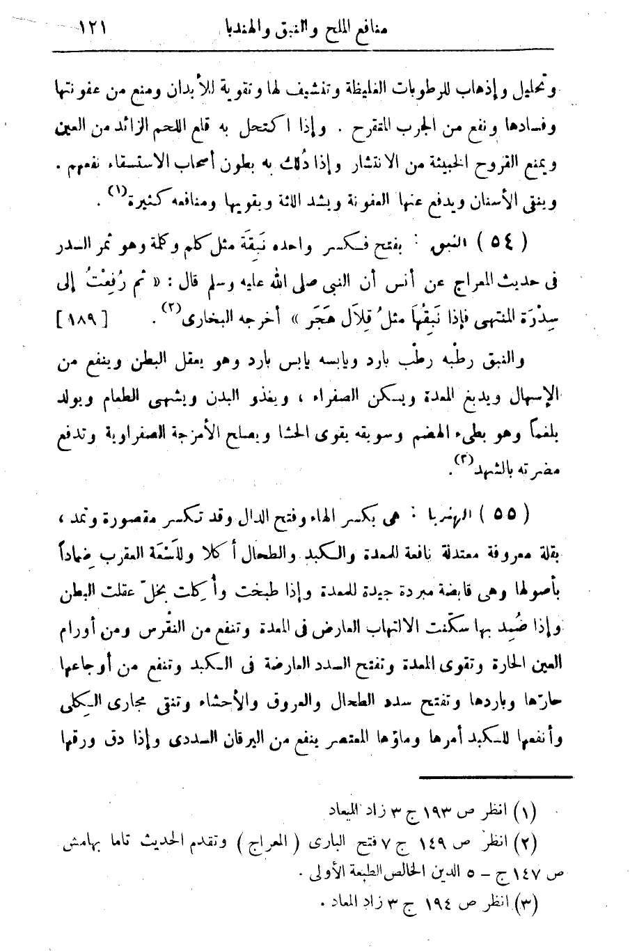 (54) النبق: بفتح فكسر واحدة نبقة مثل كلم وكلمة وهو ثمر السدر في حديث المعراج عن أنس أن النبي صلى الله عليه وسلم قال: " ثم رفعت إلى سدرة المنتهى فإذا نبقها مثل قلال هجر " أخرجه البخاري (¬2). {189}