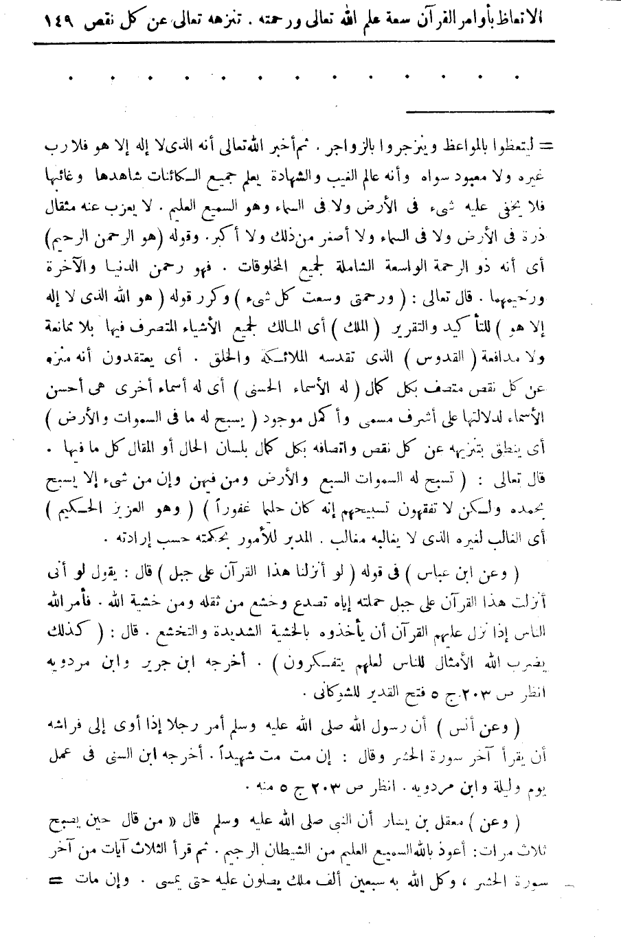 (وعن أنس) أن رسول الله صلى الله عليه وسلم امر رجلا إذا اوى إلى فراشه أن يقرأ آخر سورة الحشر وقال: إن مت مت شهيدا. أخرجه ابن السنى فى عمل يوم وليلة وابن مردوية. انظر ص 203 ج 5 منه.