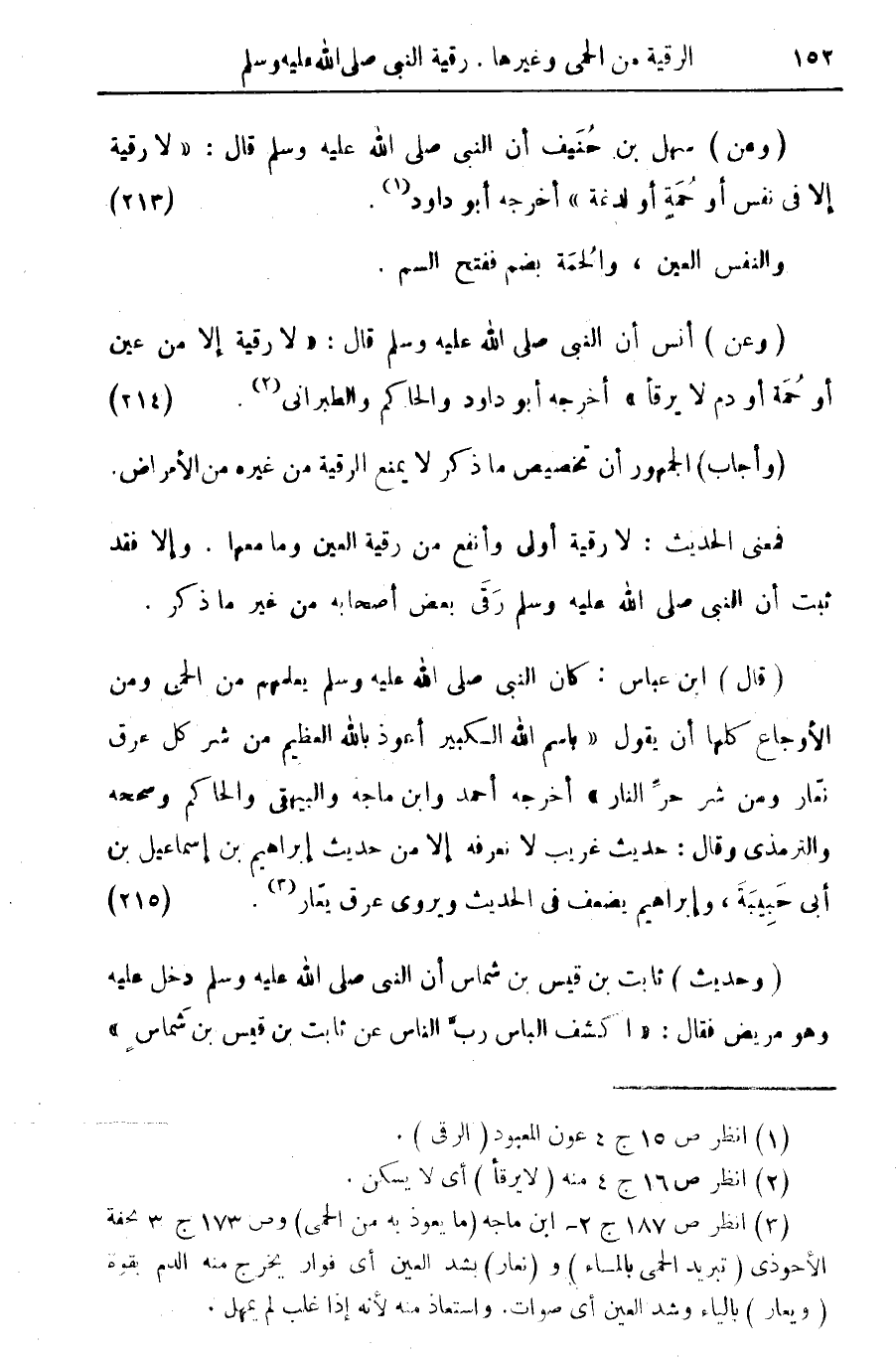 (وعن) أنس أن النبي صلى الله عليه وسلم قال: " لا رقية إلا من عين أو حمة أو دم لا يرقأ " اخرجه أبو داود والحاكم والطبرانى (¬1). {214}