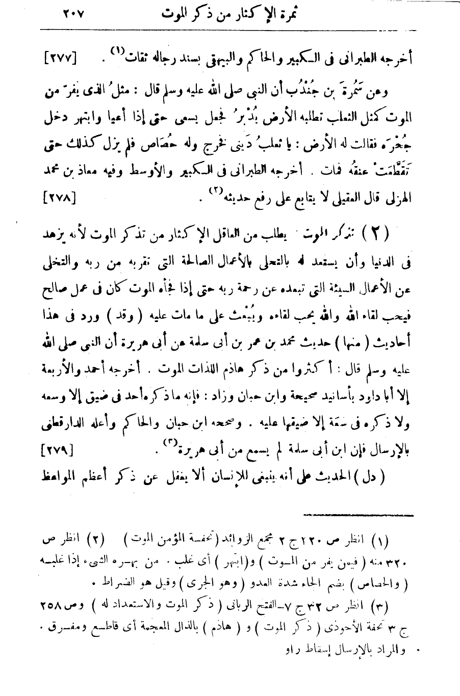 (¬3) انظر ص 32 ج 7 - الفتح الربانى (ذكر الموت والاستعداد له 9 وص 258 ج 3 تحفة الأحوذى (ذكر الموت) و (هادم) بالذال المعجمة أى قاطع ومفرق. والمراد بالإرسال إسقاط راو